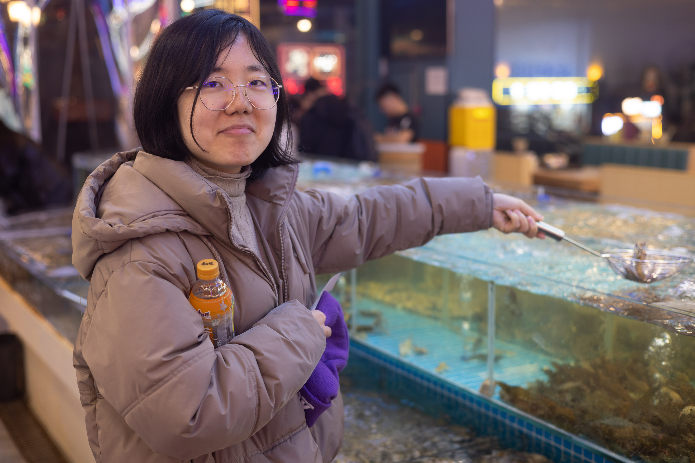 At the end of April, on a weekend, my wife and I went to Beidaihe for a short getaway. For dinner on the first day, we went to a buffet restaurant. The restaurant’s seafood was all live, and customers had to pick their selections from tanks themselves. It seemed like my wife was a little scared to do so…