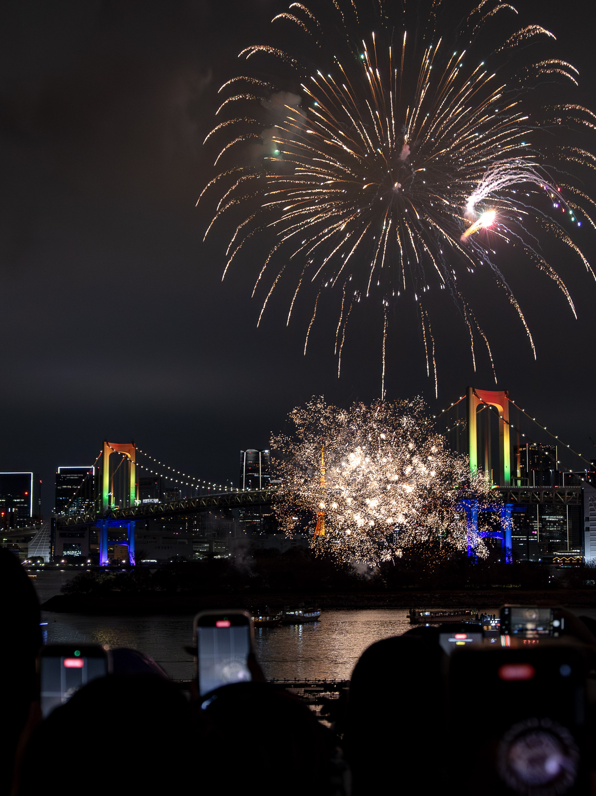 Even though there was a light rain and we didn't manage to get a great spot, the combination of Rainbow Bridge, Tokyo Tower, the fireworks, and the sheer relief of finding our pouch made it a truly unforgettable night.